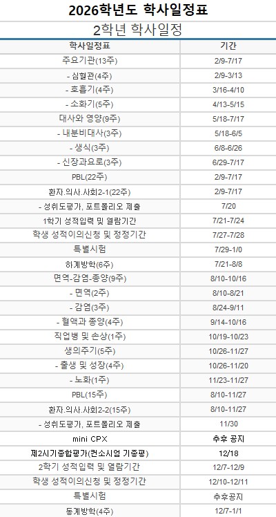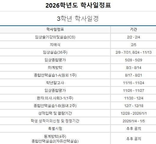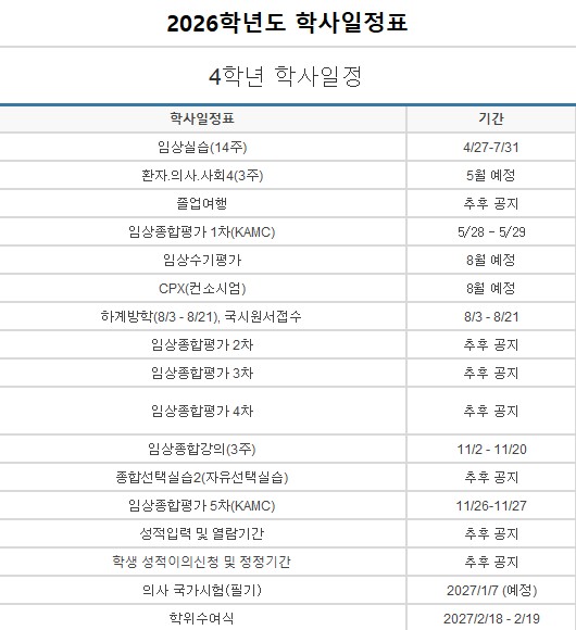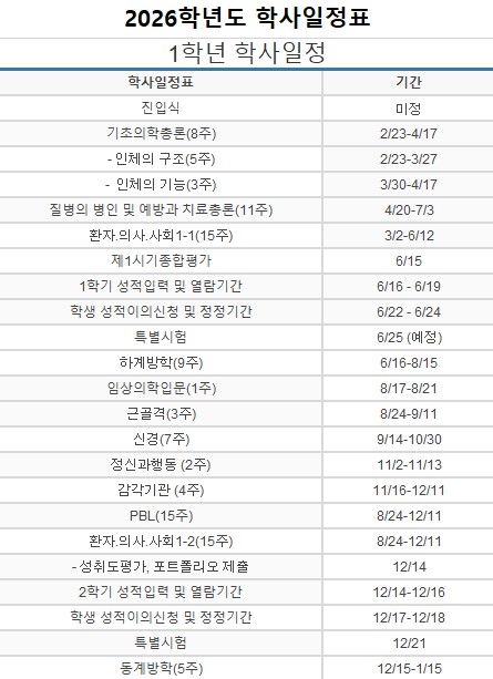 일정 - 의과대학