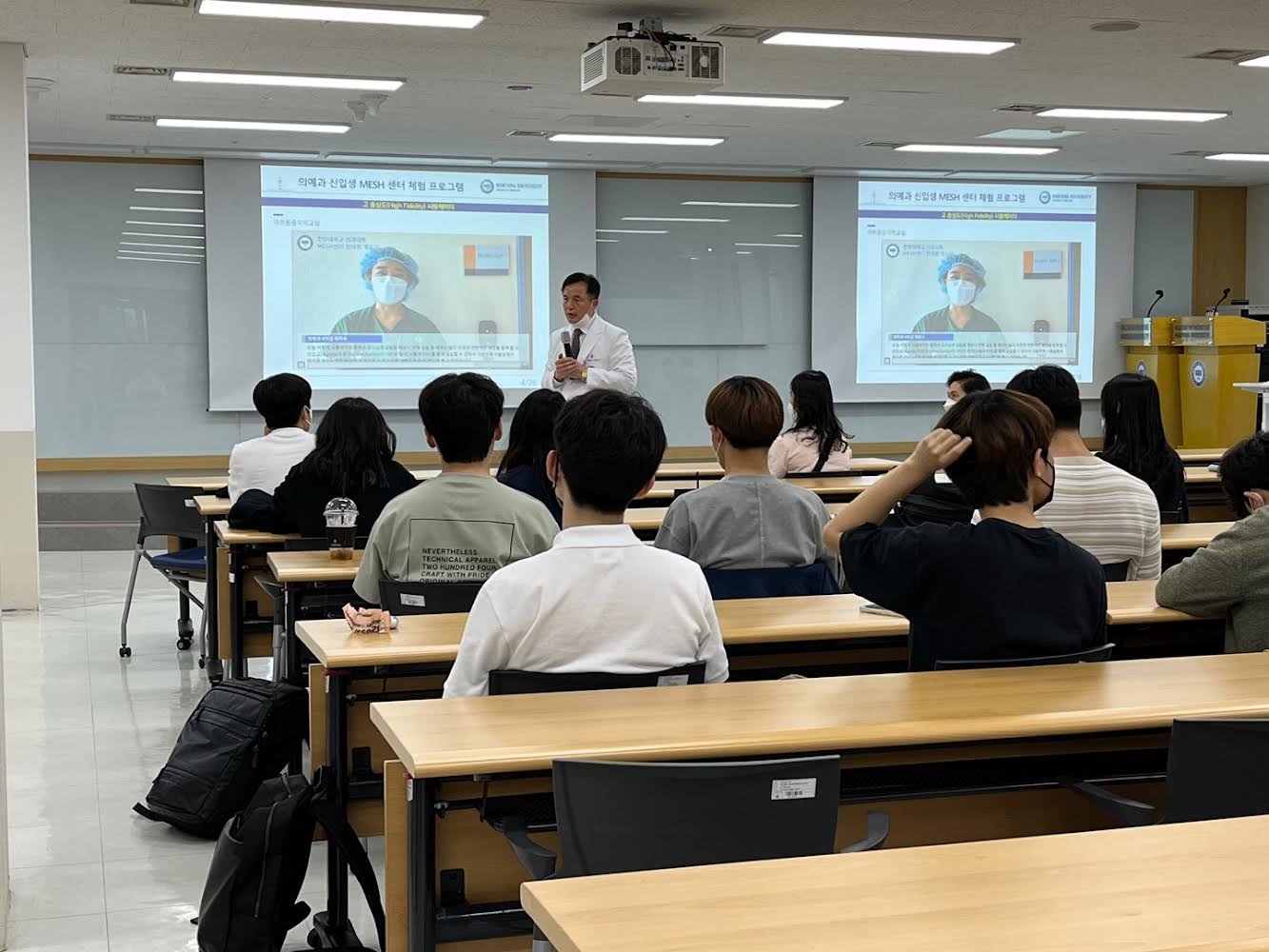 2022년 5월 11일~12일, 우리대학이 자랑하는 임상술기센터를 의예과 신입생을 대상으로 체험할 수 있도록 프로그램을 진행하였습니다. 본 프로그램은 의예과 학생들의 애교심 고취, 임상실습 교육과정 체험을 통한 의과대학 학업에 대한 동기 부여, 진로 모색 등을 목적으로 설계되었습니다
