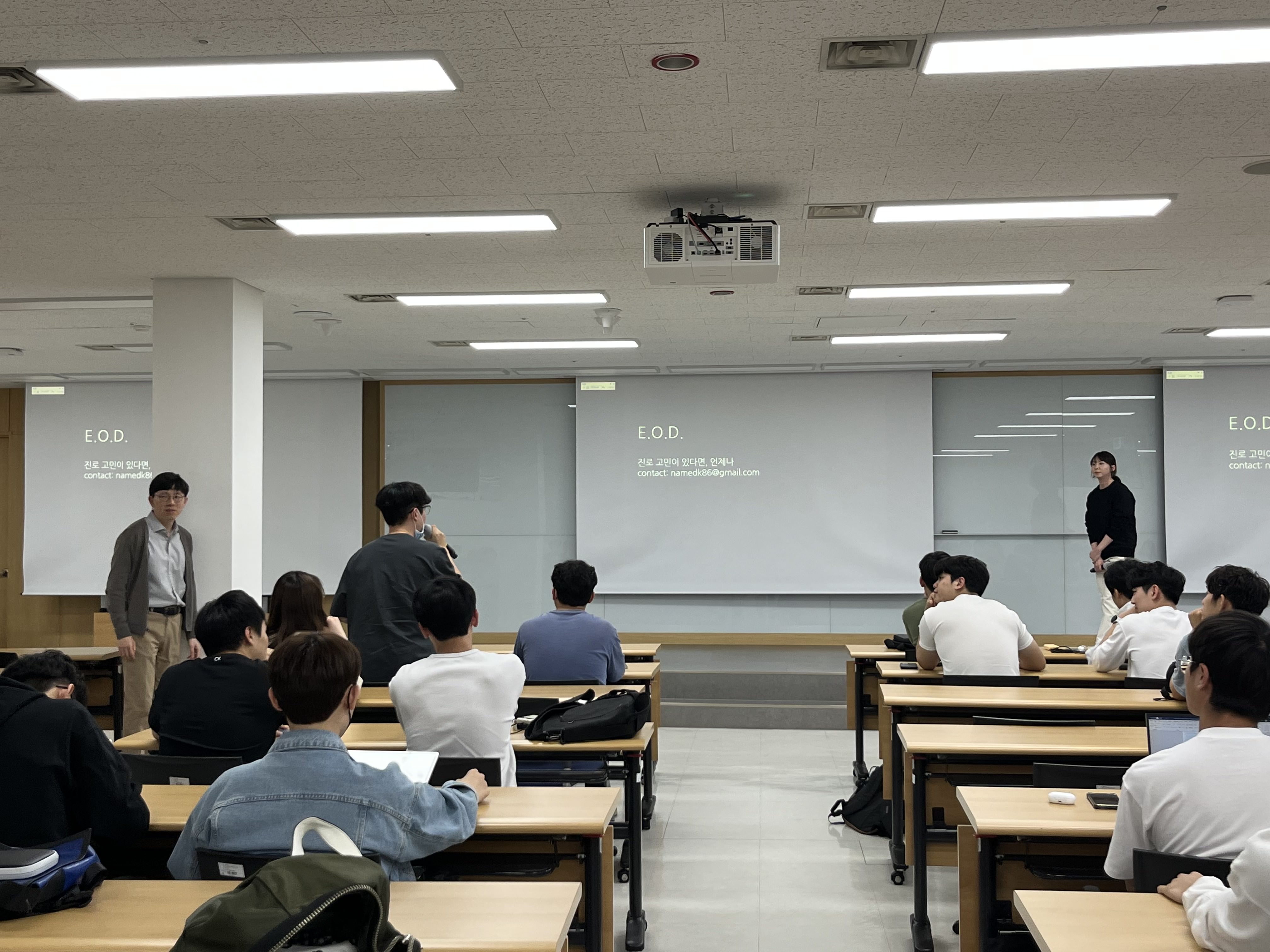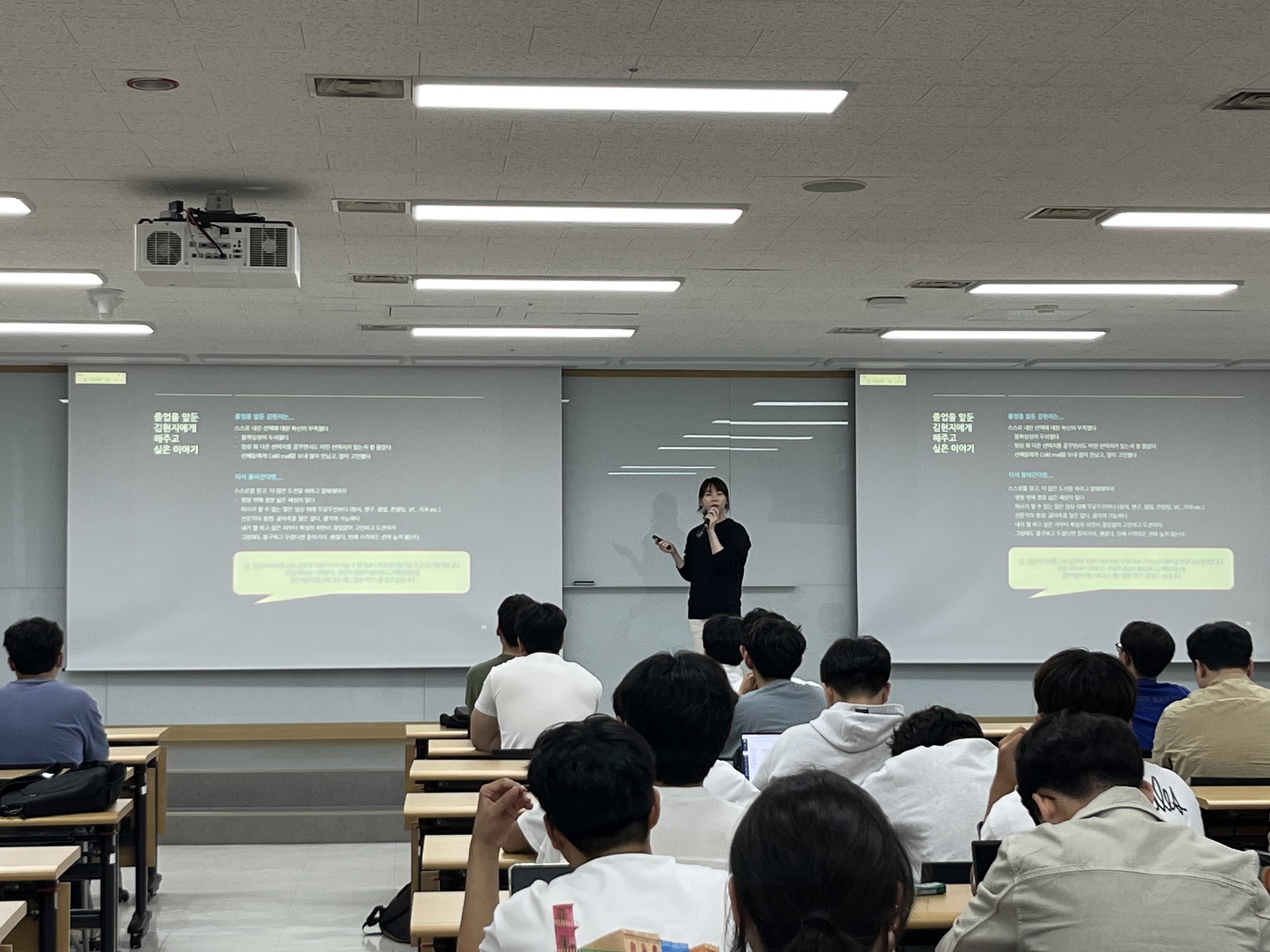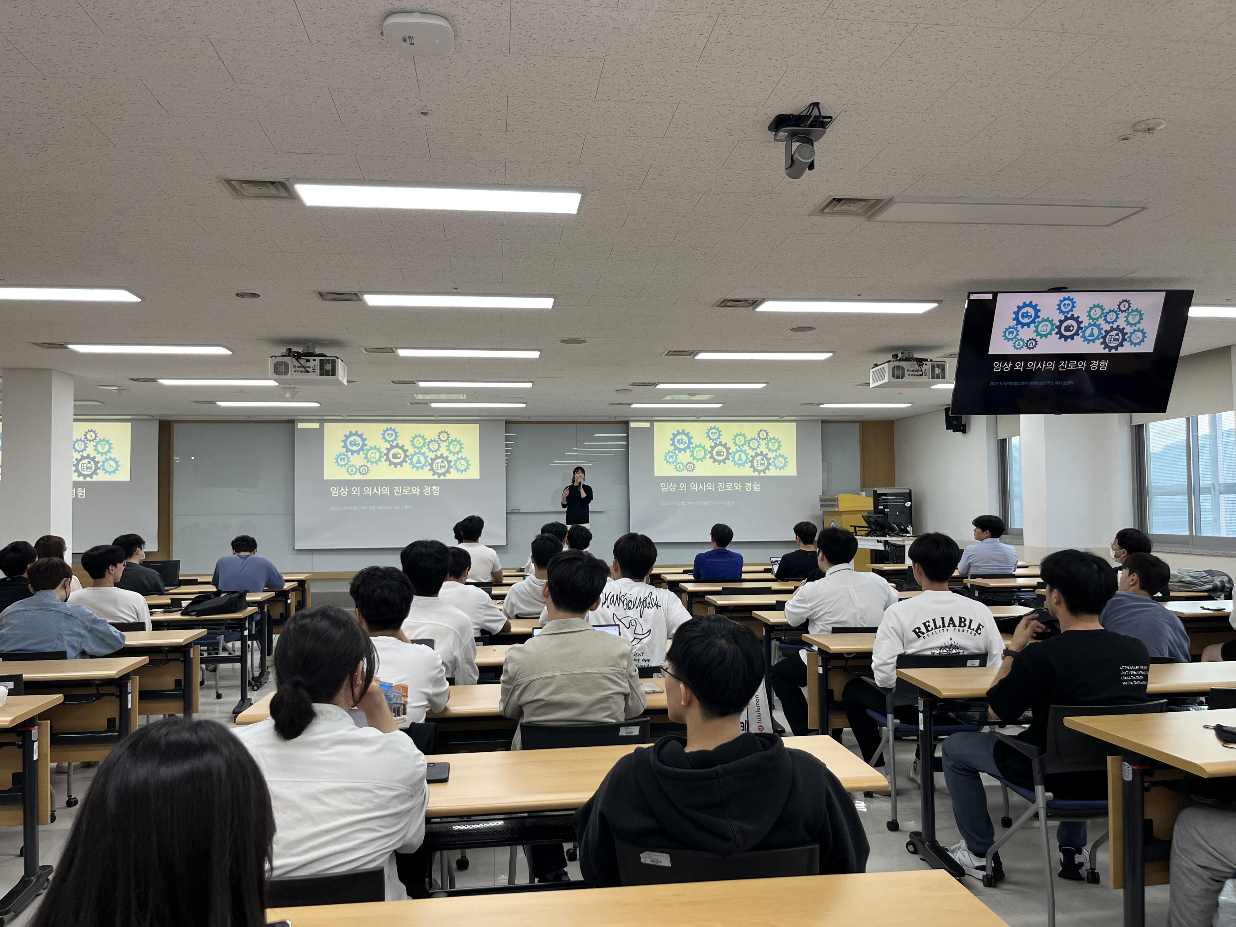 2023년 5월 15일 한양의대 학생들의 진로 탐색을 돕고자 <임상 외 의사의 진로와 경험>을 주제로 진로 특강을 진행하였습니다. 이번 특강에서는 카카오헬스케어 김현지 이사님께서 개인적 경험을 바탕으로 다양한 임상의사 외 진로에 대해 강연해주셨습니다. 최근 임상 외 진로에 대한 재학생의 관심이 증대되고 있는 가운데, 약 100명의 학생들이 참여하여 임상 현장 밖 세계에 대한 이해를 넓히는 시간을 가졌습니다.