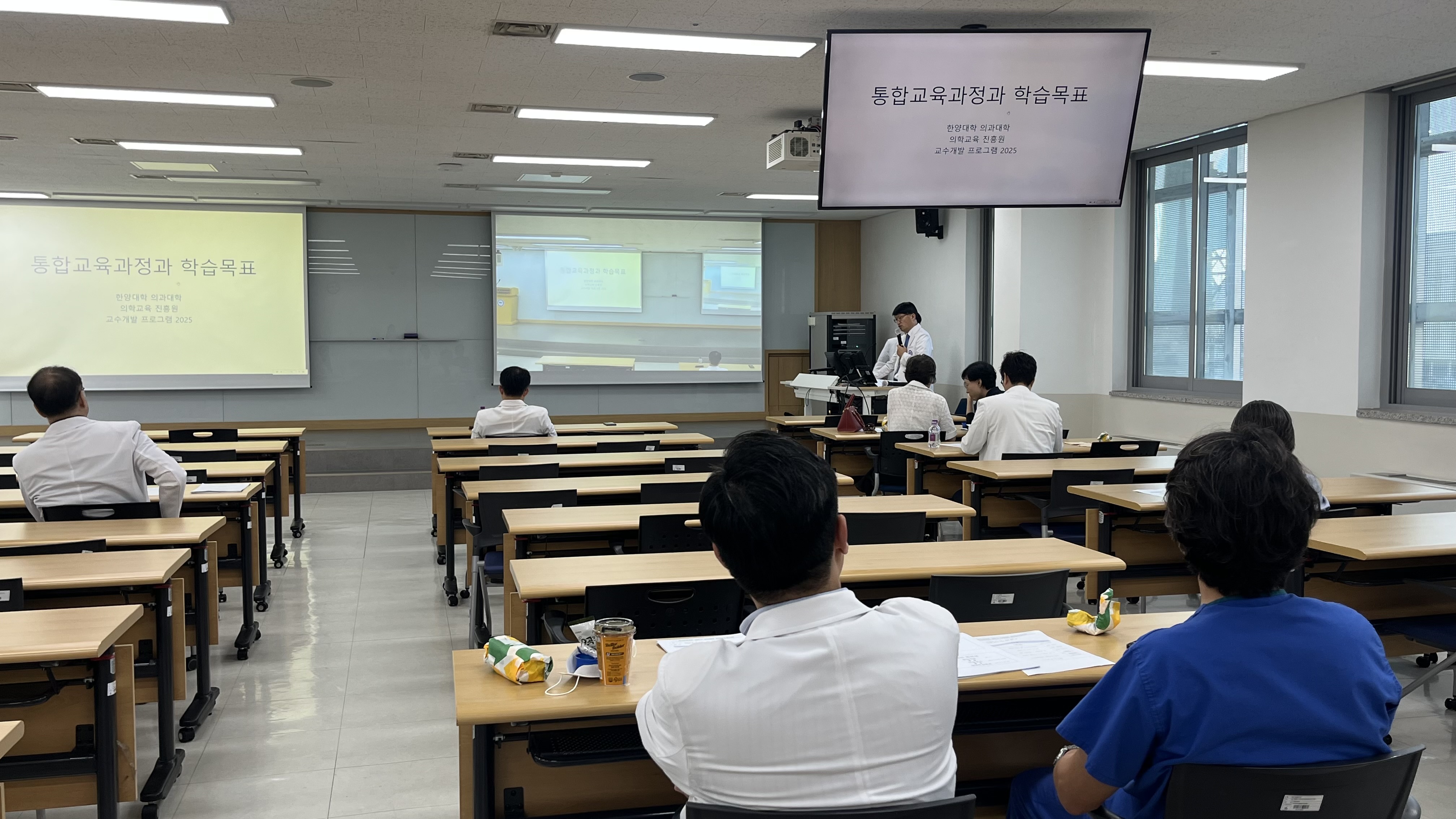 2025년 9월 2일, <6년 통합교육과정과 학습목표관리의 중요성>을 주제로 교수개발 프로그램이 진행되었습니다. 이번 프로그램은 전체교수연수회와 함께 진행되었으며, 약 200명의 교수님께서 대면 및 비대면으로 참여해 주셨습니다.