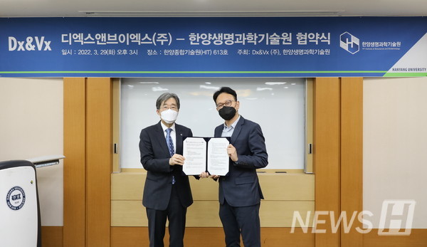 한양대 생명과학기술원(원장 배상철, 이하 HY-IBB)이 29일 오후 서울 성동구 서울캠퍼스에서 유전체 분석 및 진단 전문기업 디엑스앤브이엑스(대표 박상태)와 차세대 mRNA 백신 개발을 위한 업무협약을 체결했다.