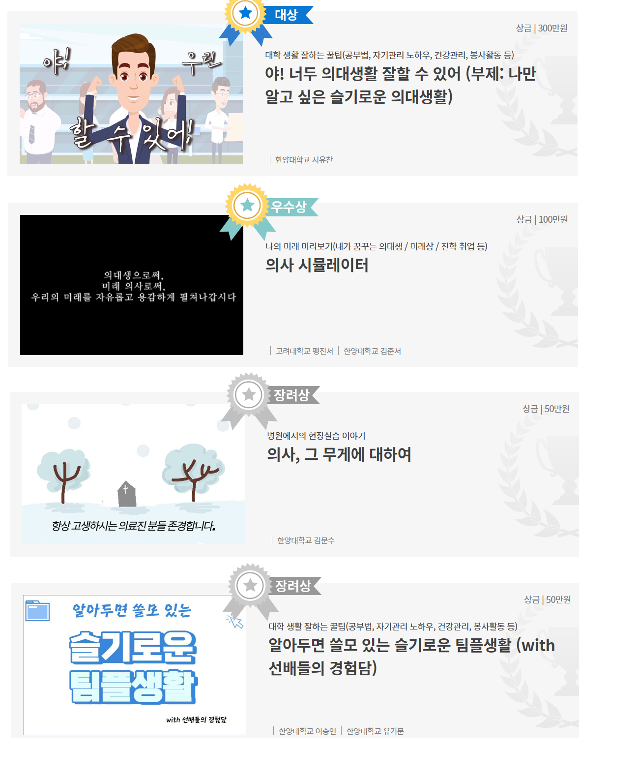 의대생 컨텐츠 공모전 2022 올해의 수상작