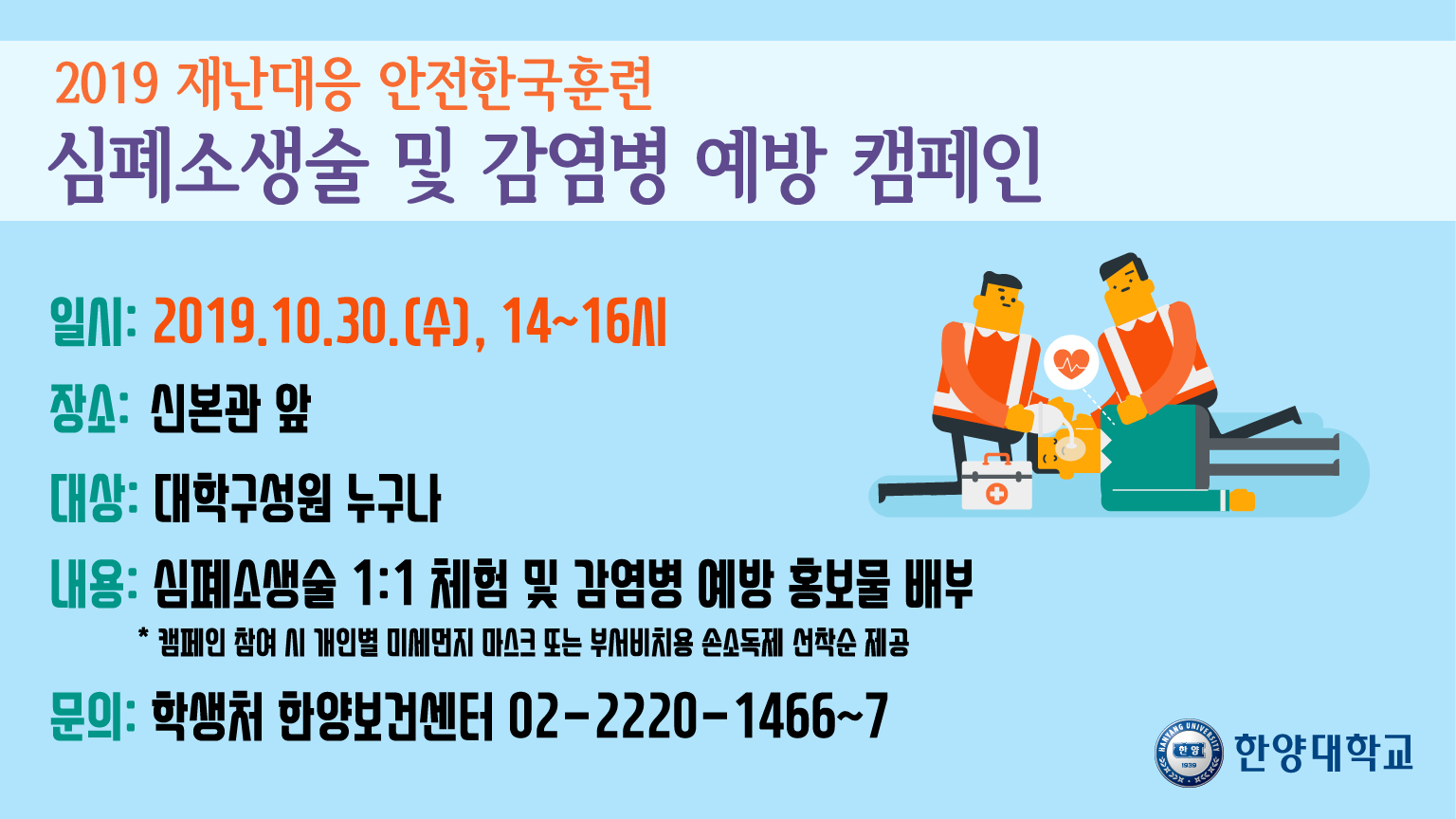 [2019 재난안전훈련] 심폐소생술 및 감염병 예방 캠페인 실시안내 Hit 11307