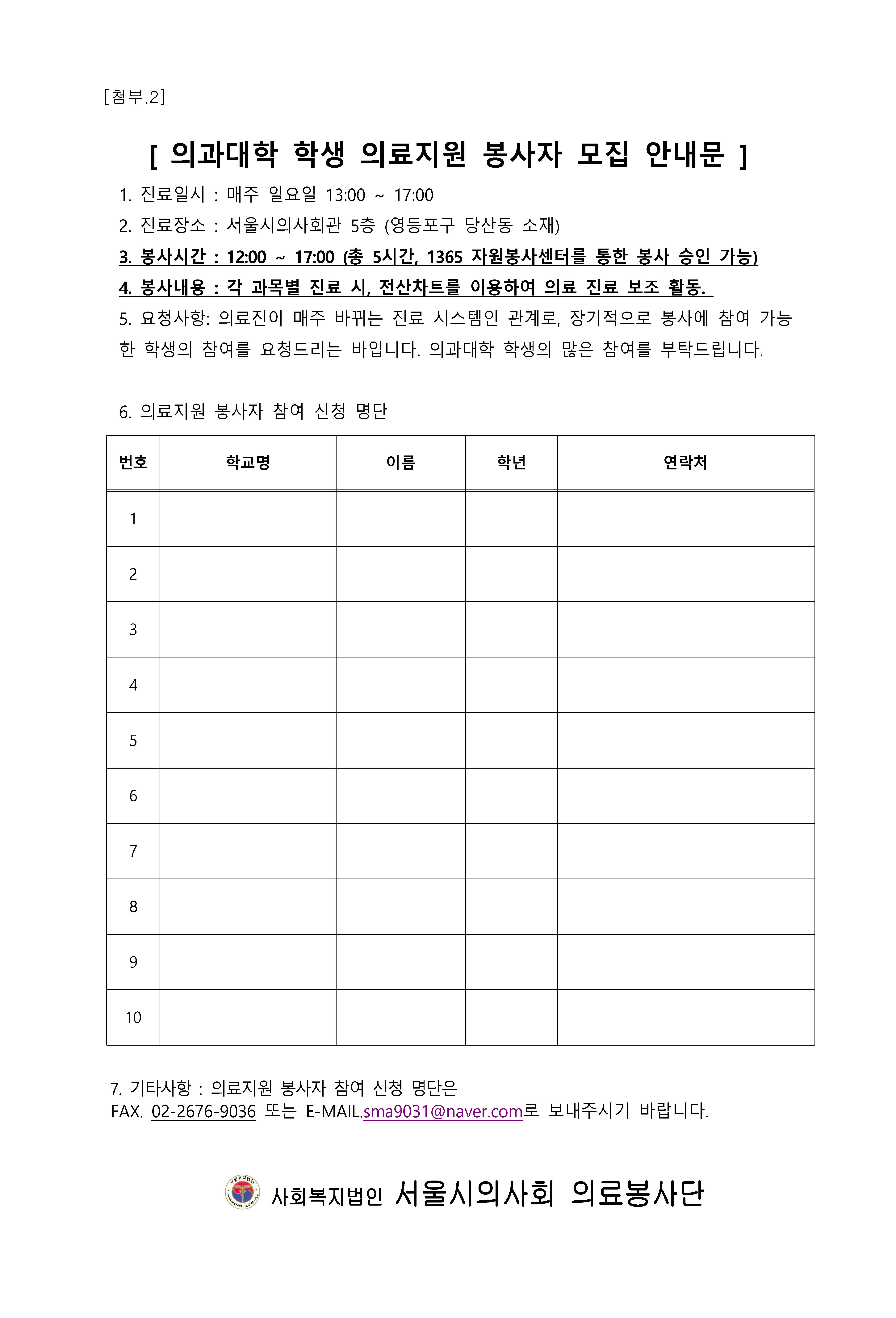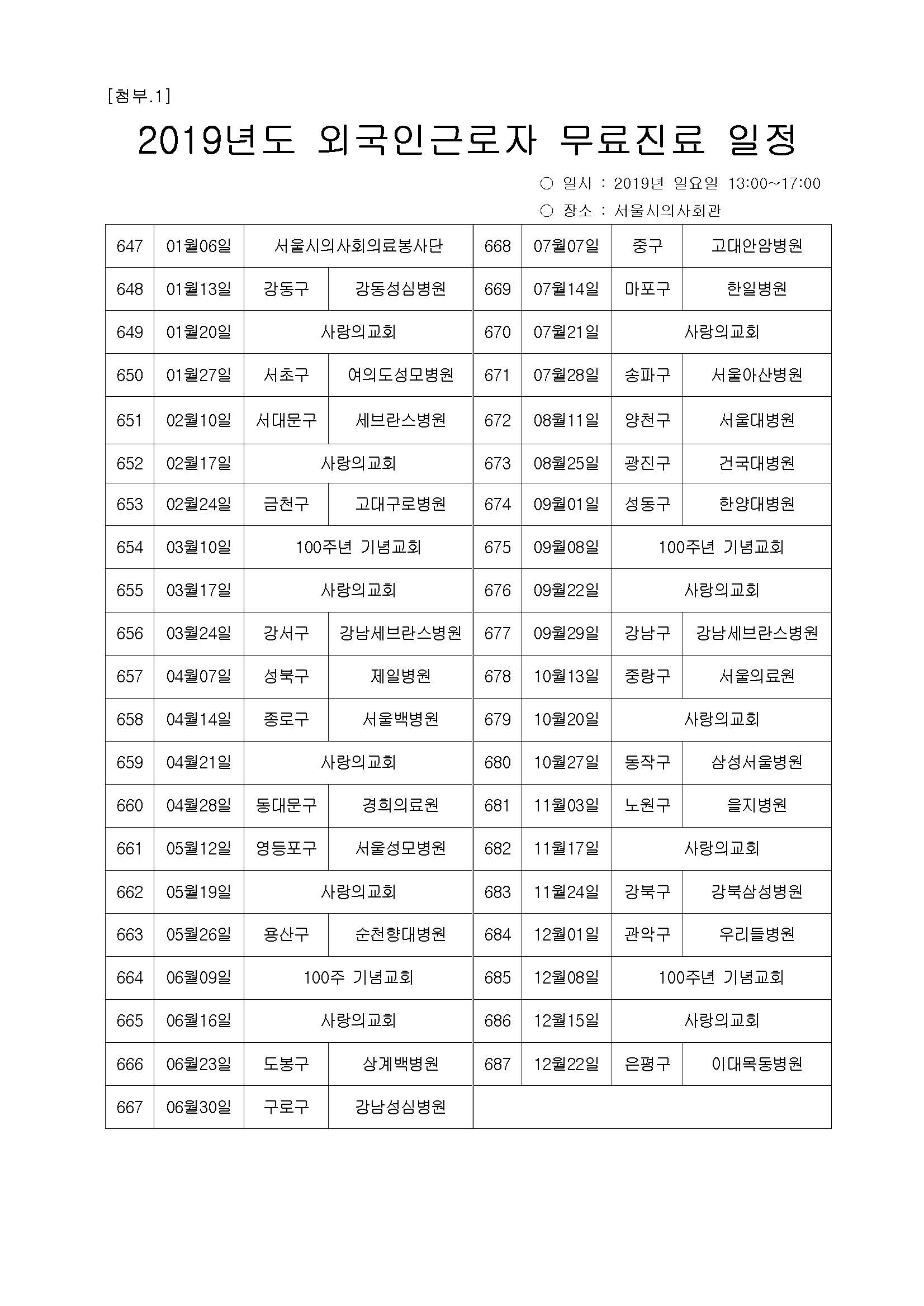 '2019년도 외국인근로자 나눔진료' 의과대학 학생 참여 안내 Hit 36737