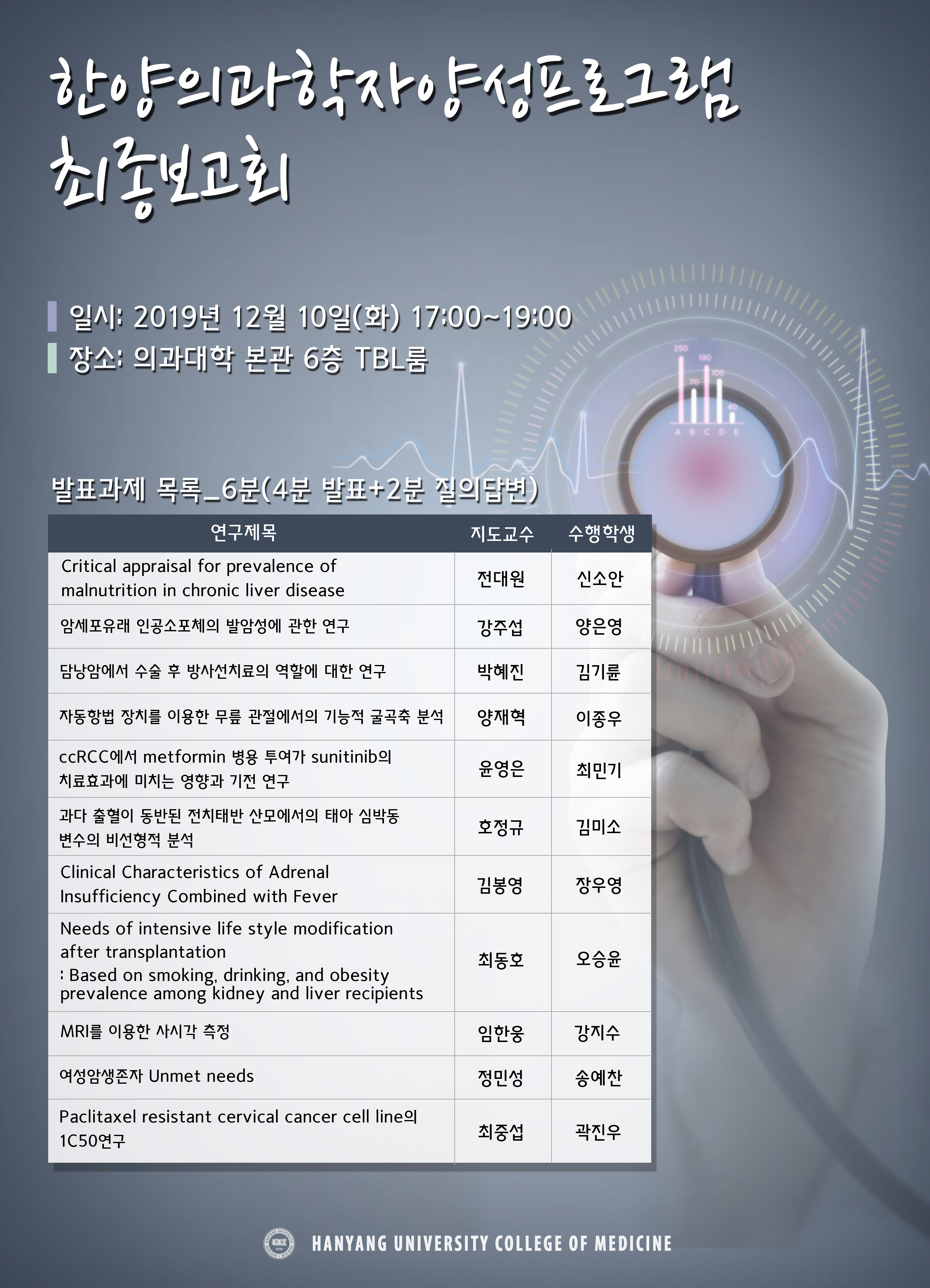 2019 한양의과학자양성프로그램 최종보고회 Hit 22850