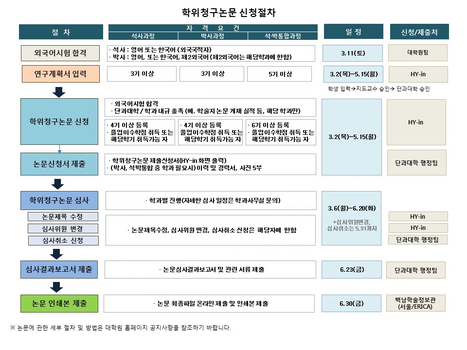 학위청구논문 신청절자 안내 일정 꼭 확인바랍니다.(기일 엄수!)