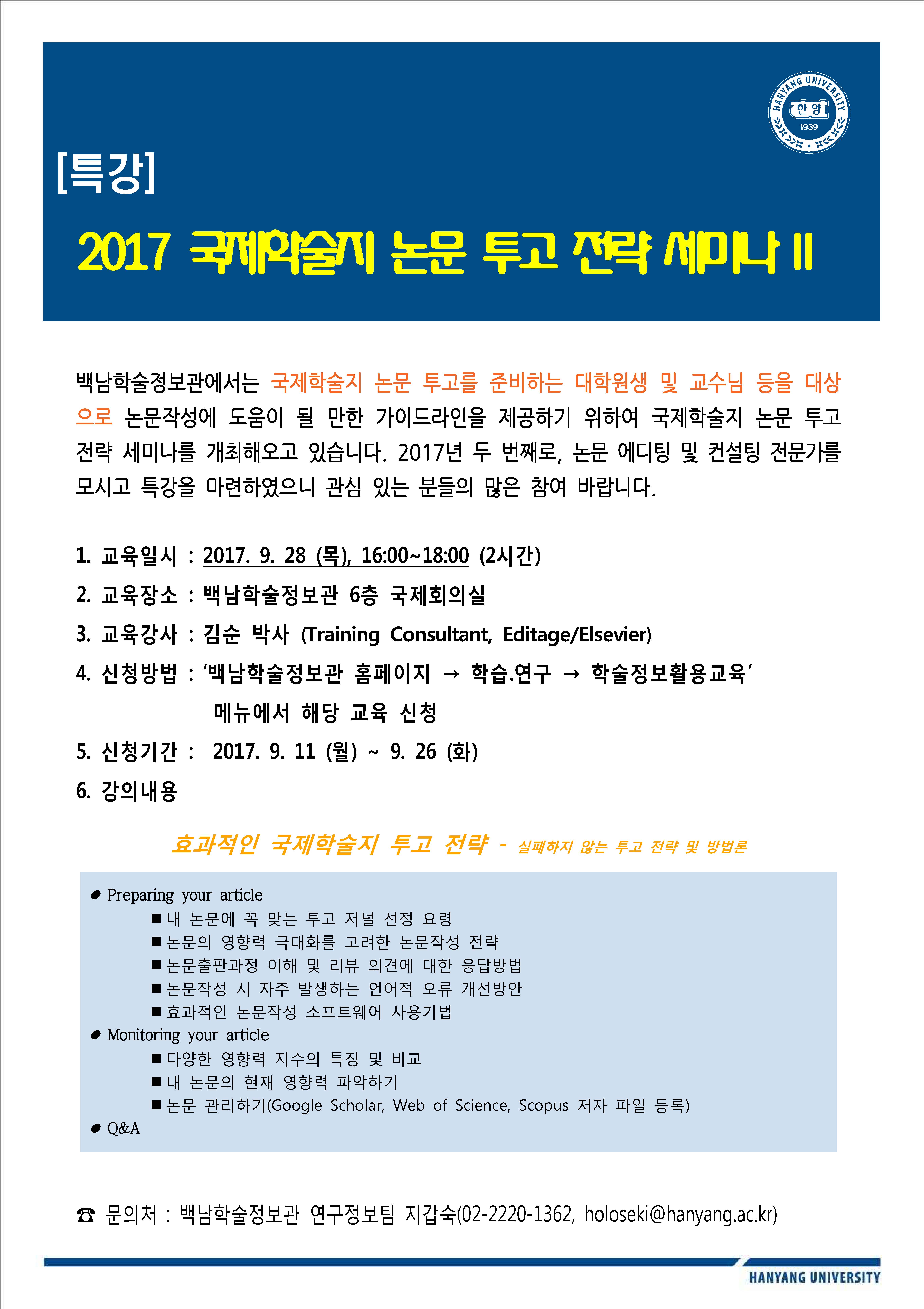 「2017 국제학술지 논문 투고 전략 세미나 II」홍보