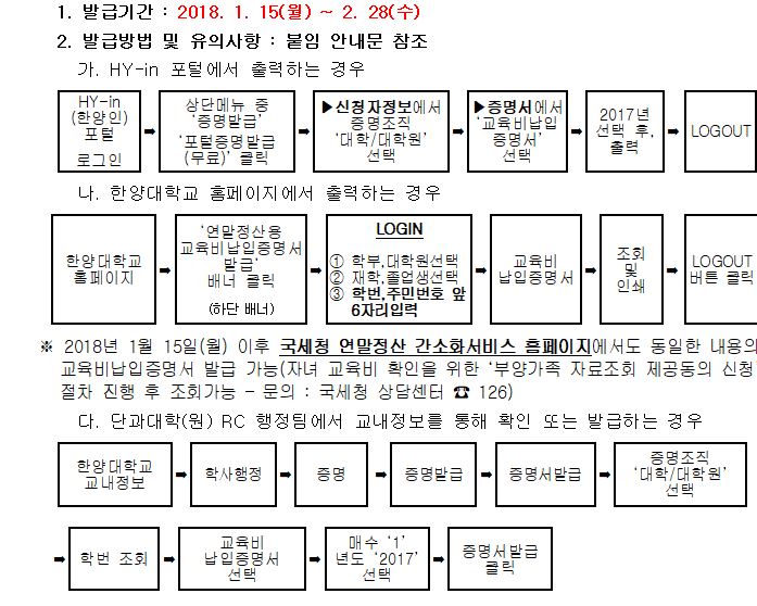 2017년 연말정산용 교육비납입증명서 발급 안내