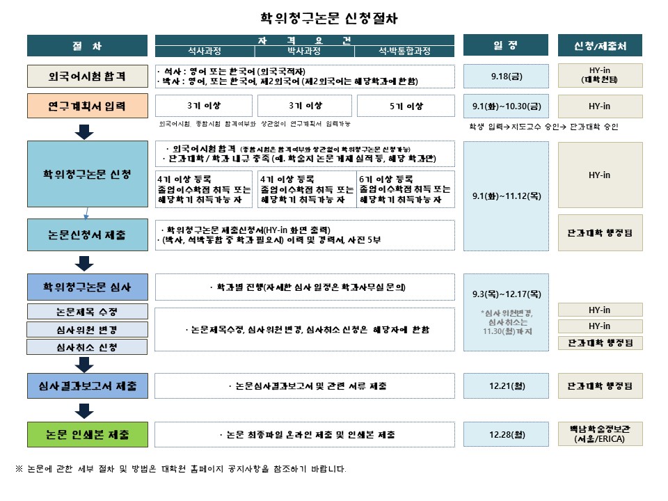 ‣ 결재방법 : HY-in > 학사행정 > 논문 > 연구계획서승인