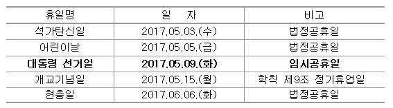 2017학년도 1학기 정기휴업일 안내 Hit 10399