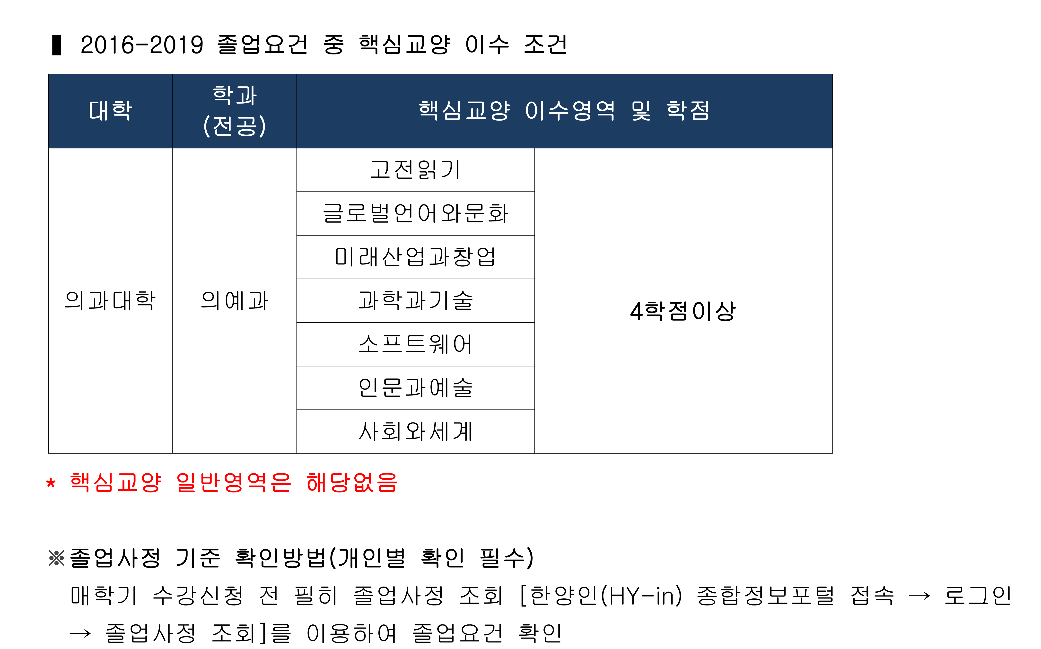 2016-2019 졸업요건 중 핵심교양 이수조건 관련하여 변동사항이 있어 재안내드리오니 유의바랍니다.