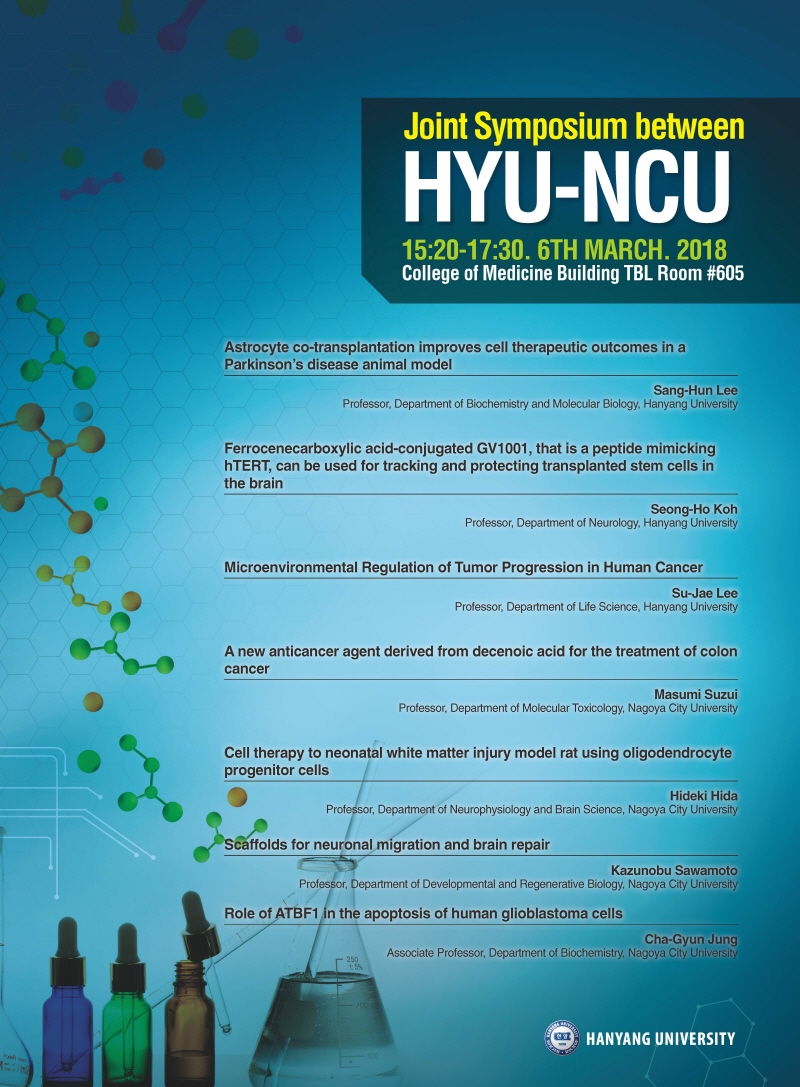 의과대학에서는 오는 3월 6일 일본의 나고야시립대학교 의과대학(Nagoya City University, NCU)과 공동 심포지움을 개최합니다.