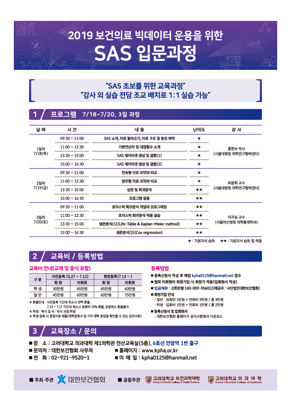 [대한보건협회]SAS입문과정 프로그램 개설안내 Hit 6042