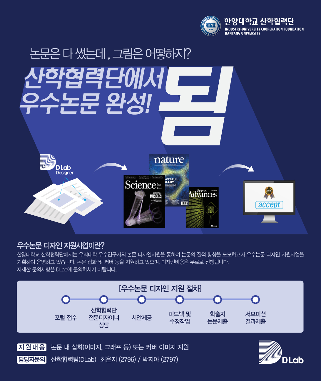 산학협력단에서는 교내 우수연구자의 논문 질적 향상을 도모하고자 논문의 시각화 디자인을 지원하는 사업을 운영 중에 있습니다.