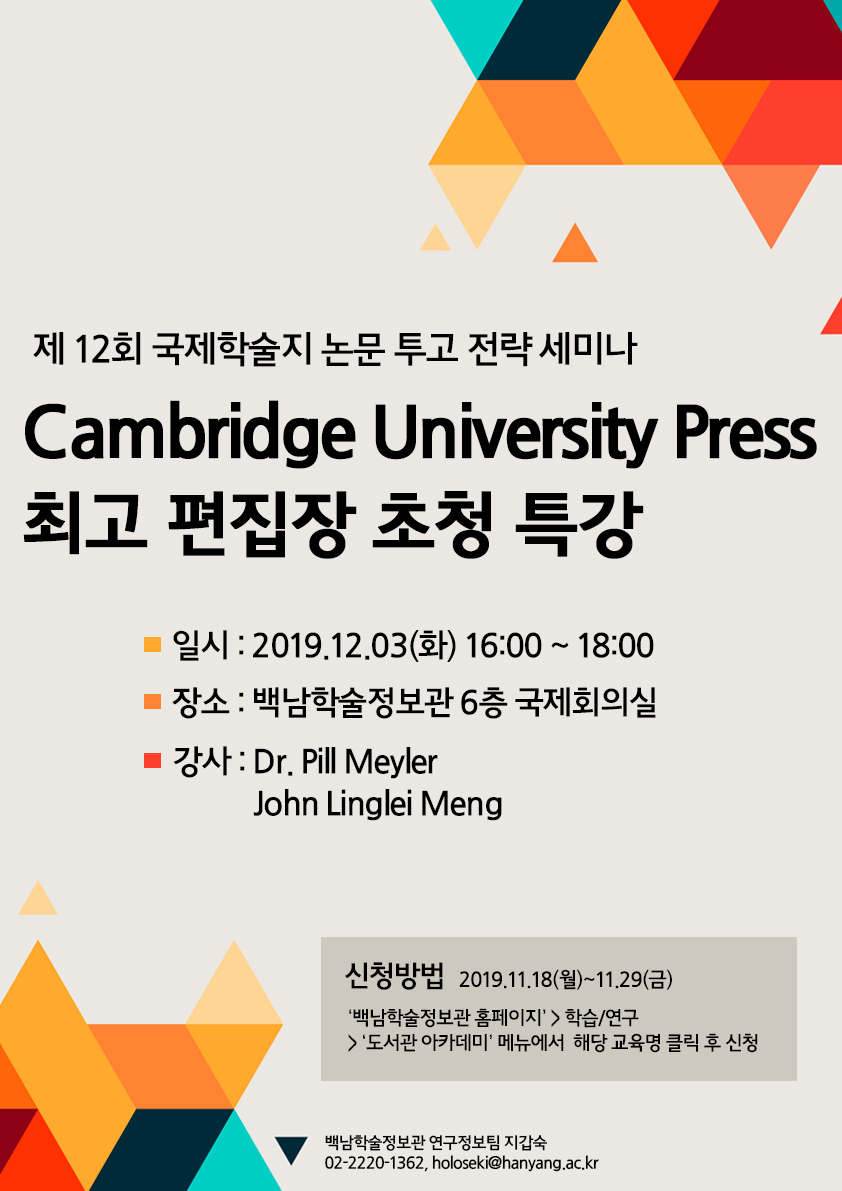 「Cambridge University Press 최고 편집장 초청 특강 : 제12회 국제학술지 논문 투고 전략 세미나」 Hit 9830