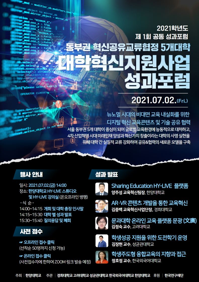 1) 행사명: 서울 동부권 혁신공유교류협정 5개 대학 제1회 공동성과포럼