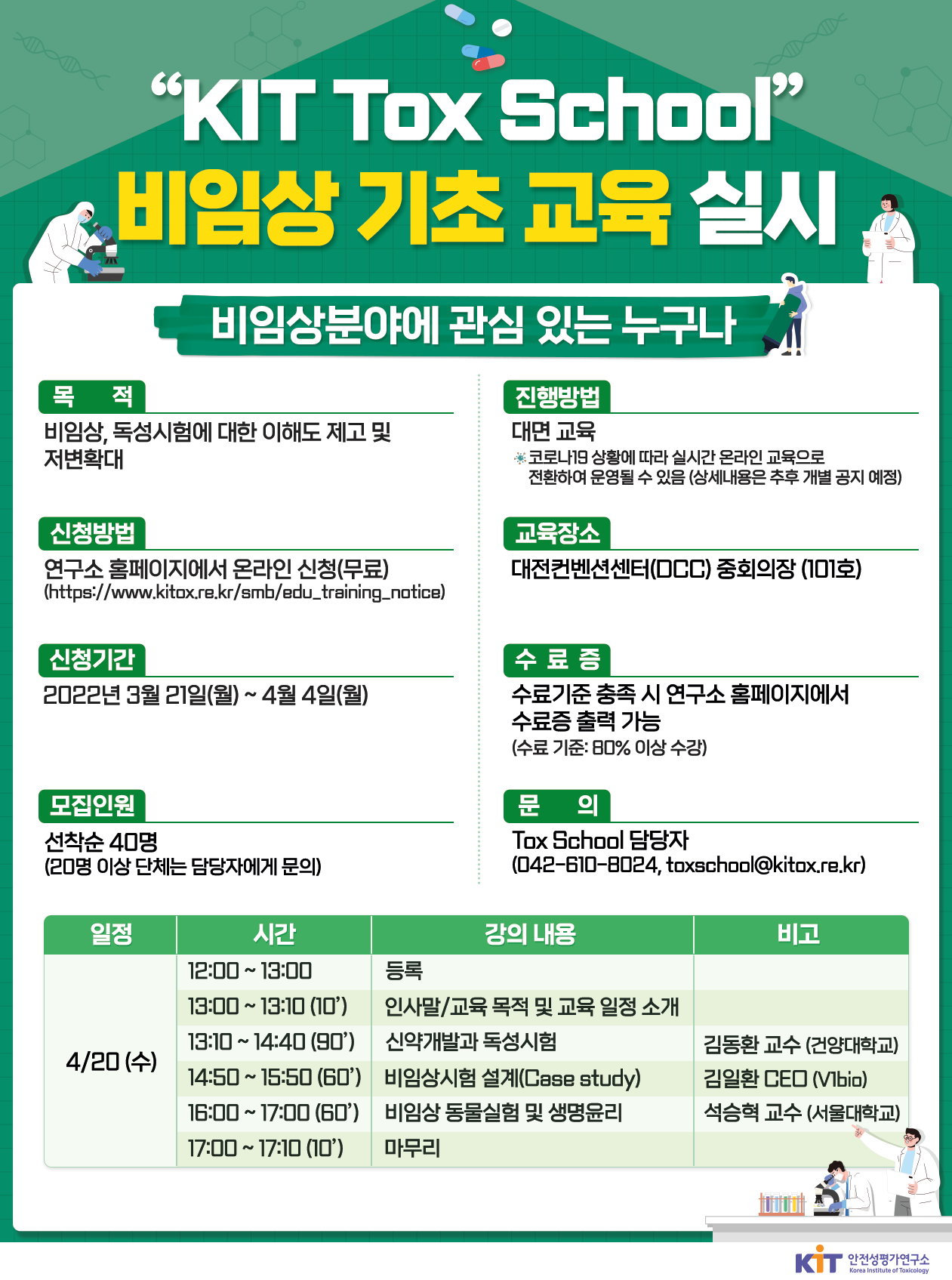 2022-1차 『KIT Tox School』 비임상 기초교육 개최 안내 및 홍보 Hit 3397