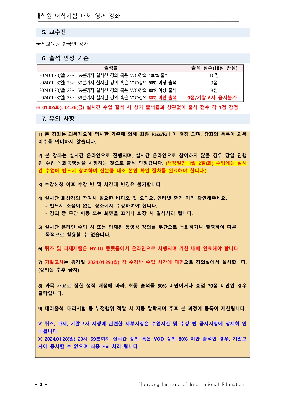 대학원 2023학년도 동계 영어시험 대체강좌 실시 안내